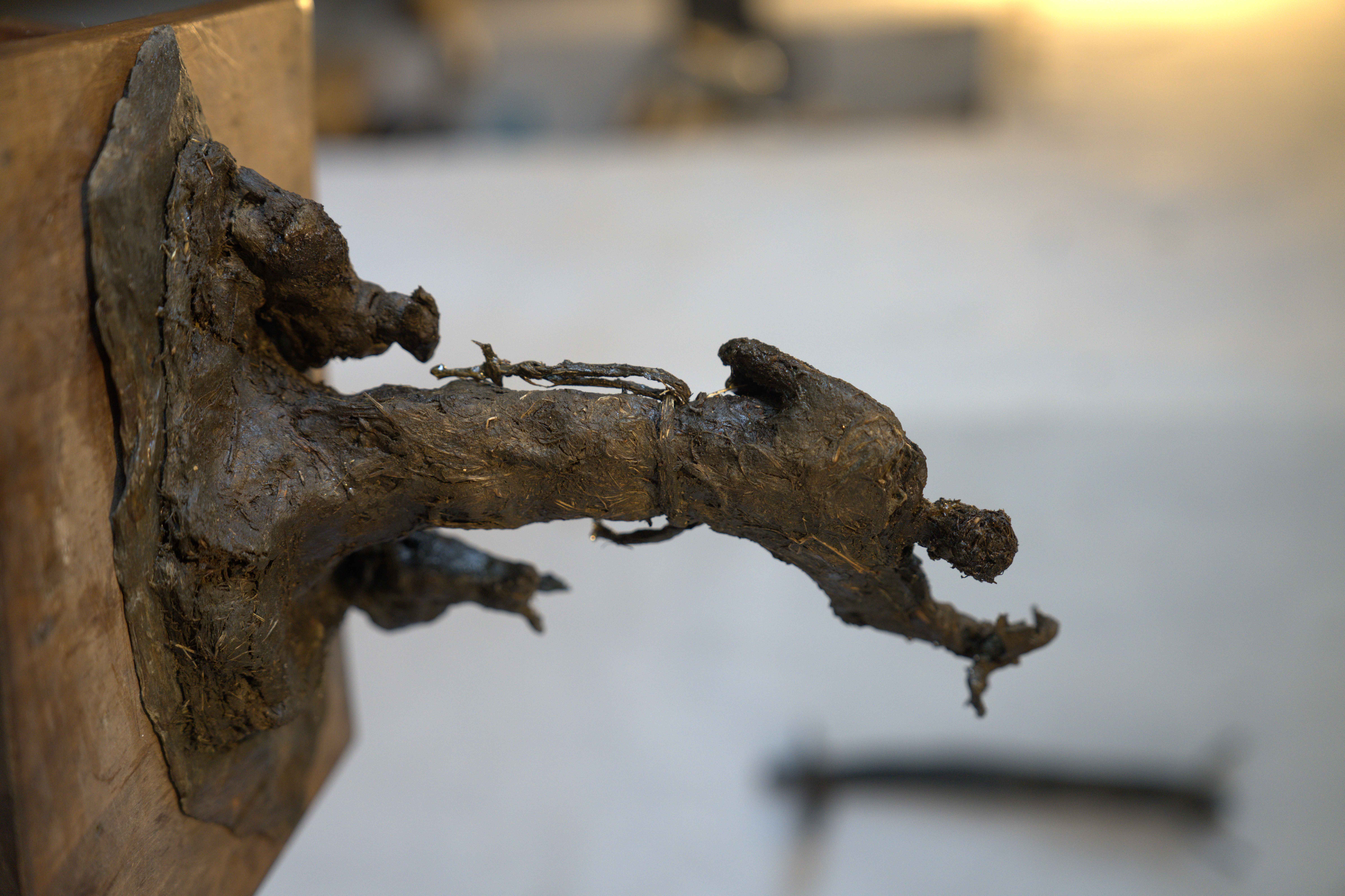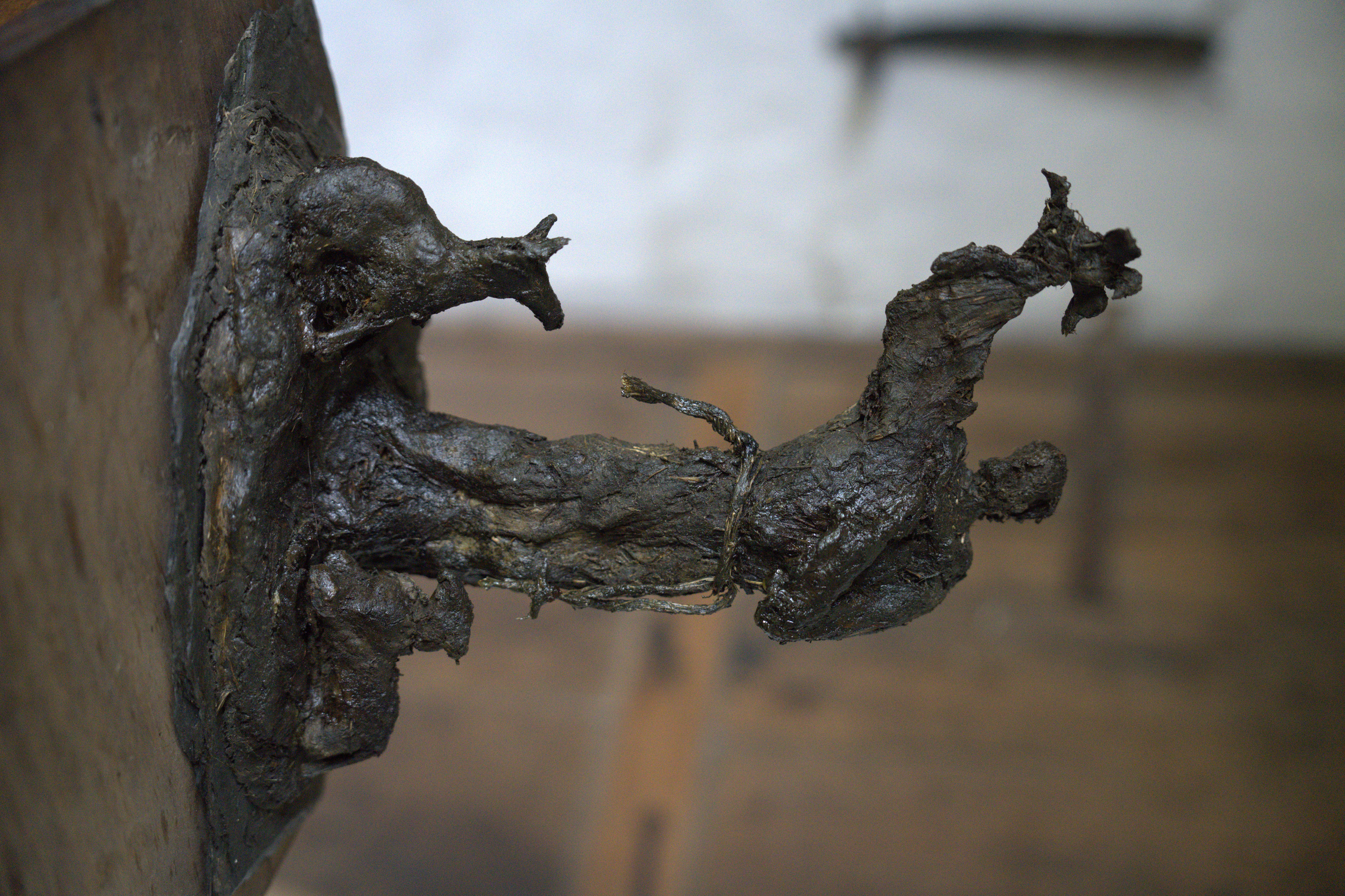 Sculpture en argile marine et fibre végétale. Vernis naturel, gommose.